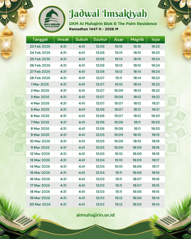 Jama'ah Al Muhajirin yang dirahmati Allah InsyaAllah semua kegiatan dan laporan keuangan ramadhan Musholla akan diupdate di sini. Semoga Bermanfaat.
